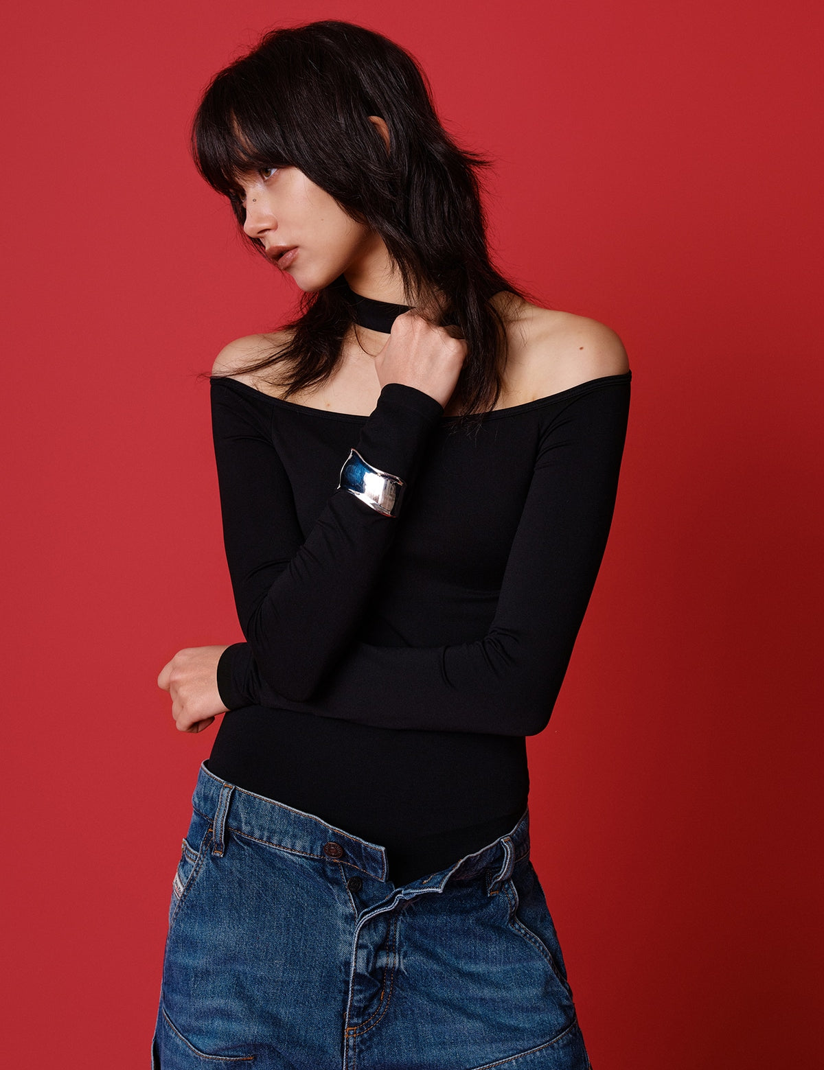 Choker Neck Shouder-off Bodysuit