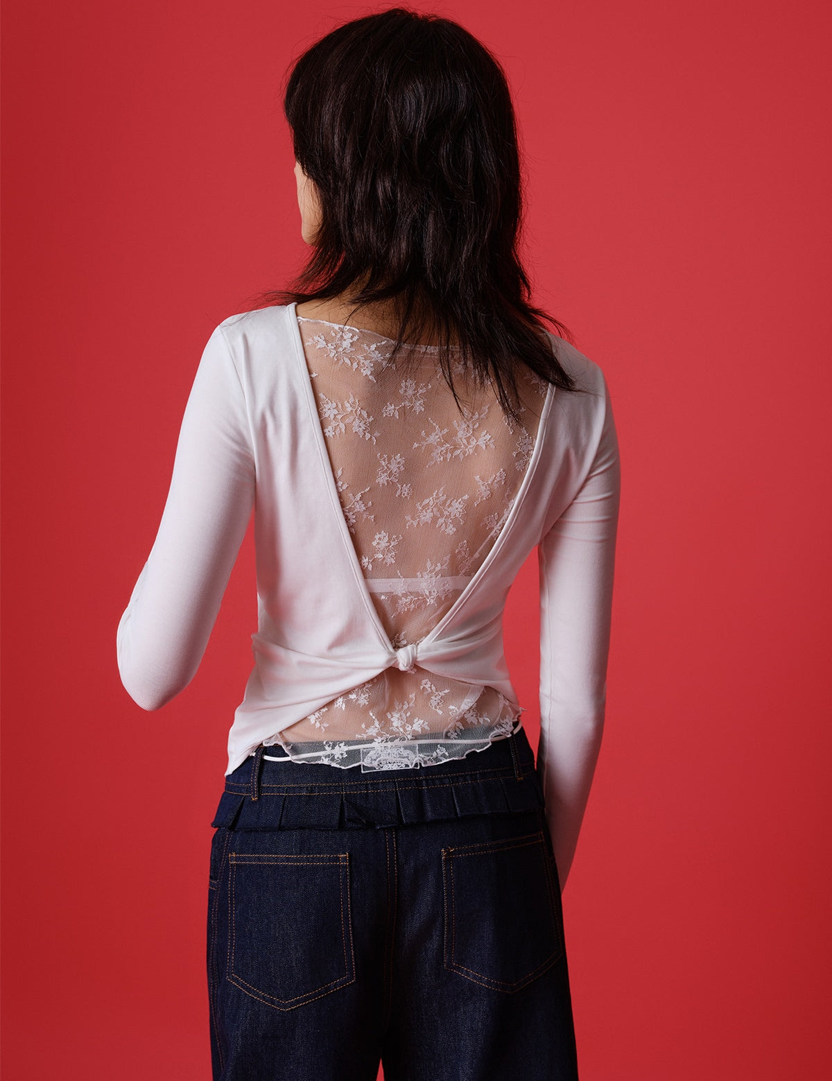 Lace Back Knotted Long Sleeve T