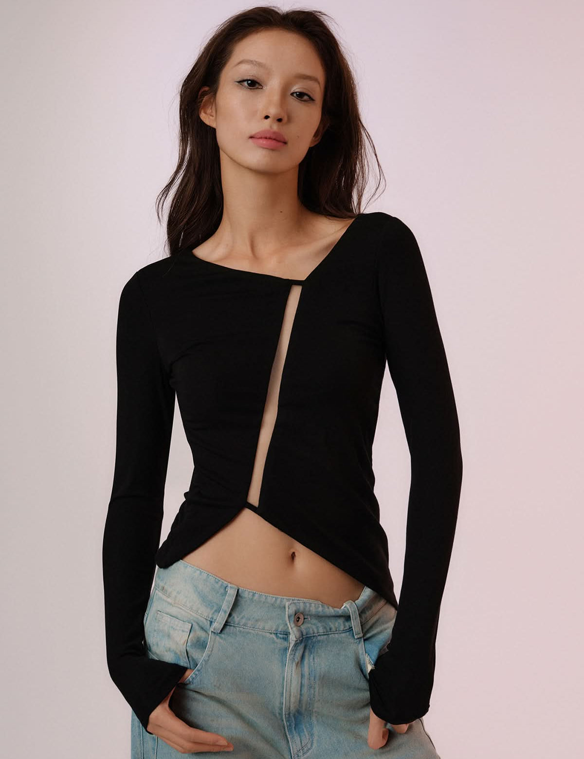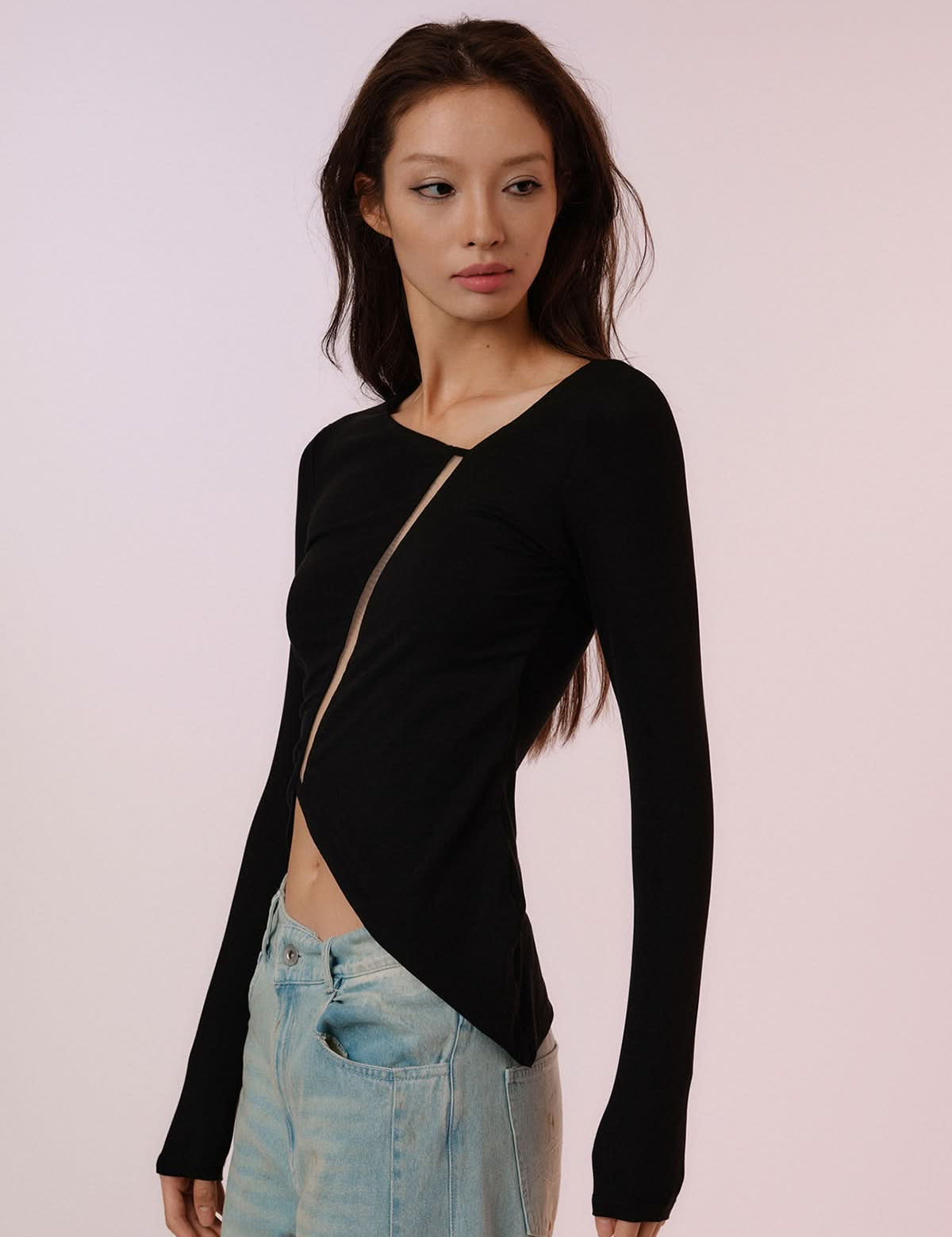 Translucent Mesh Long Sleeve T