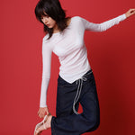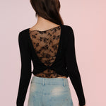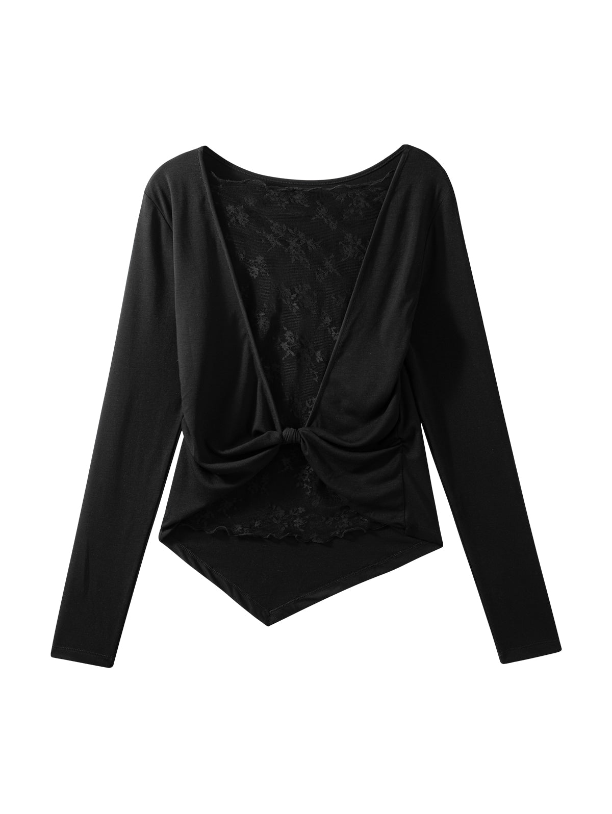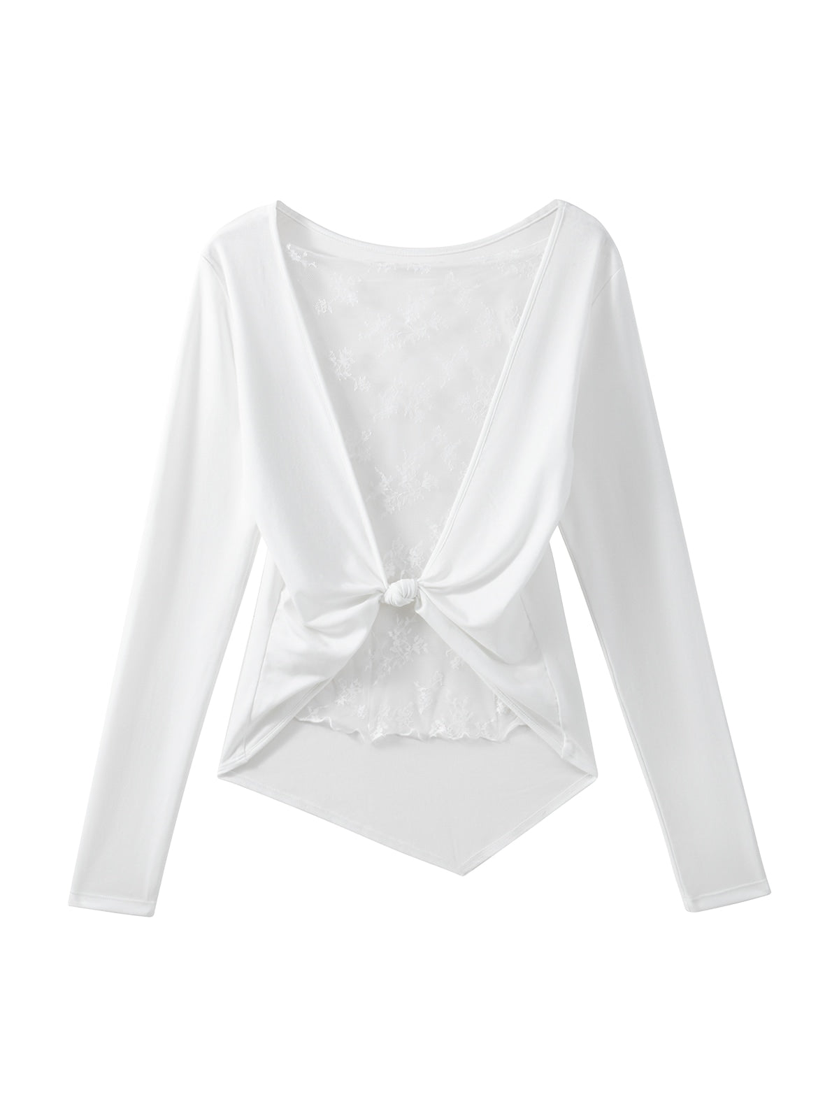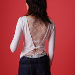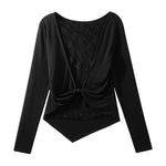 Lace Back Knotted Long Sleeve T